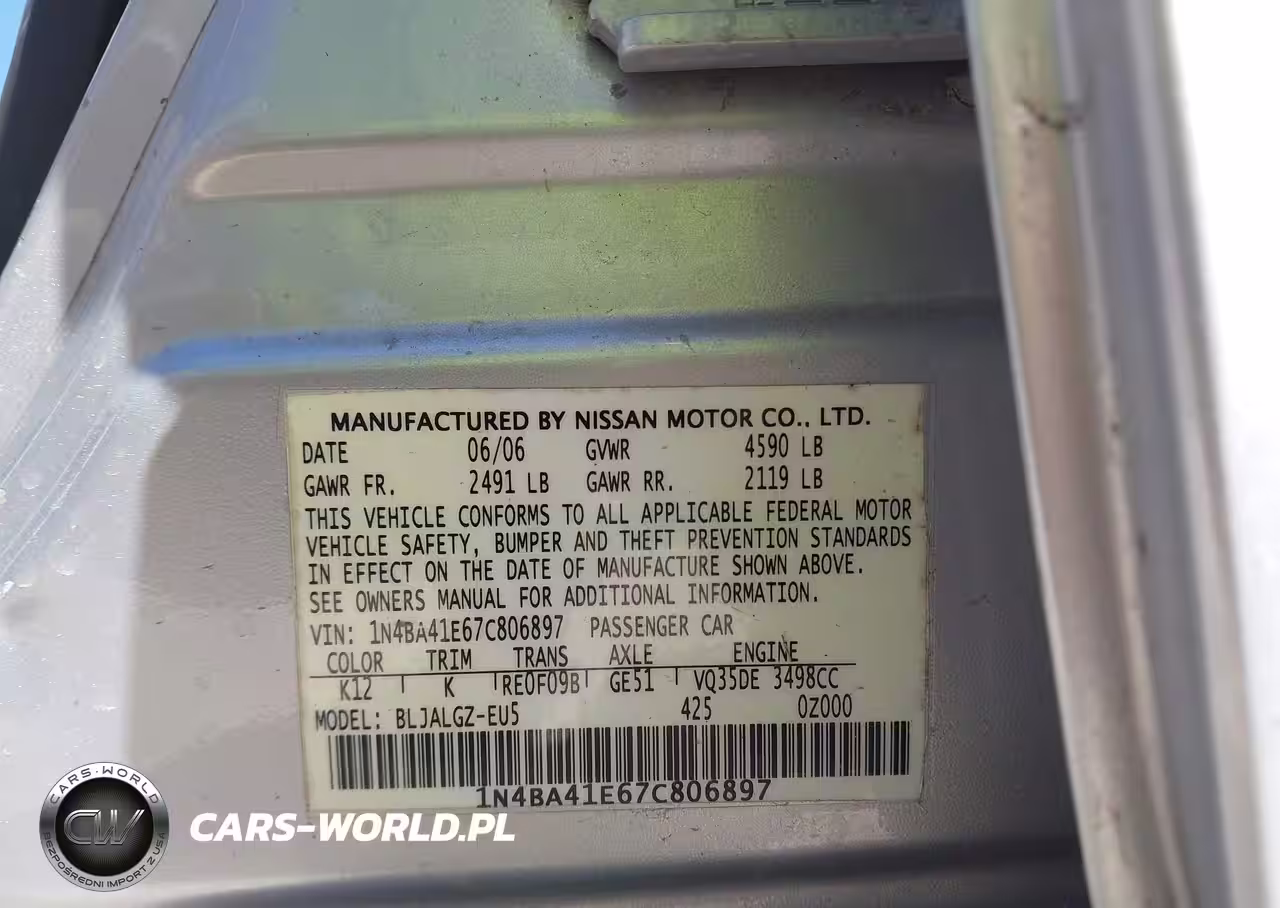 Główne zdjęcie 2007 Nissan Maxima 3.5 Sl