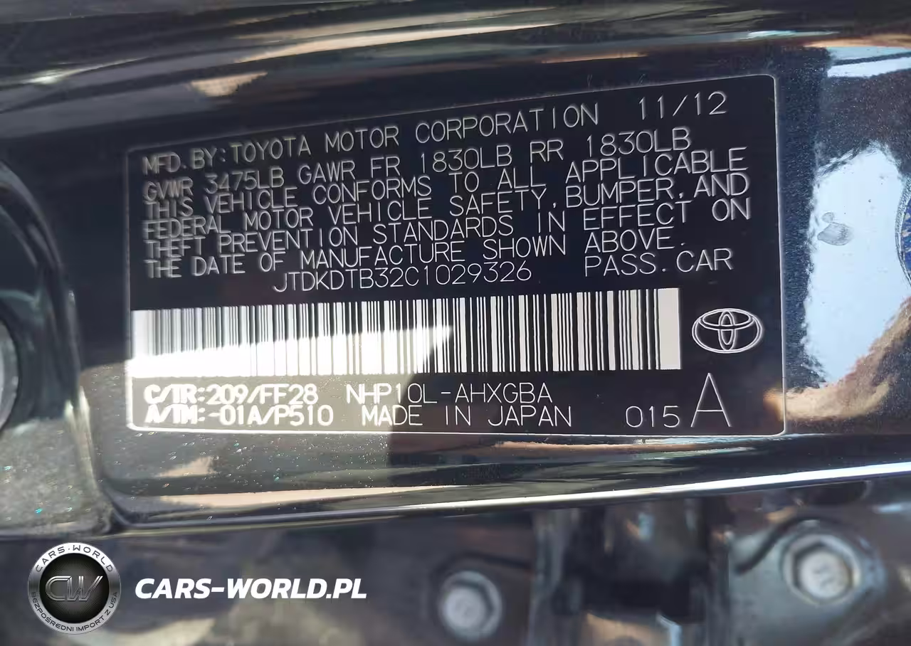 IAAI Nr: I-44578449 VIN: JTDKDTB32C1029326 Port: Los Angeles, CA