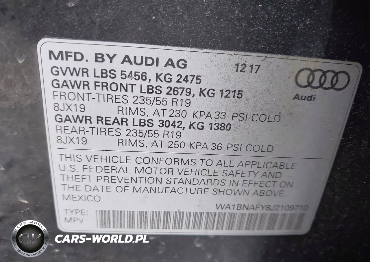 IAAI Nr: I-44578541 VIN: WA1BNAFY8J2109710 Port: Elizabeth, NJ