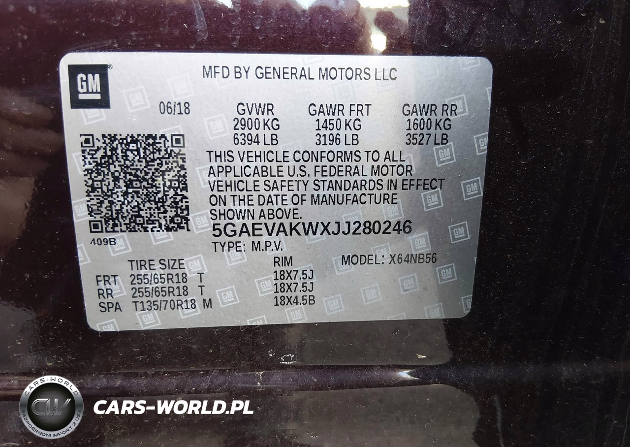 IAAI Nr: I-44578695 VIN: 5GAEVAKWXJJ280246 Port: Elizabeth, NJ