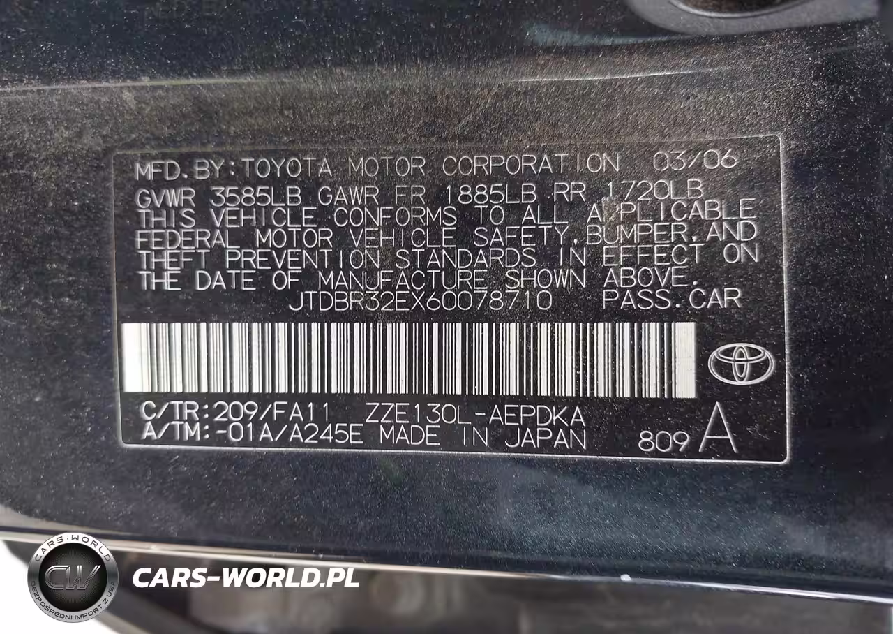 IAAI Nr: I-44579698 VIN: JTDBR32EX60078710 Port: Los Angeles, CA