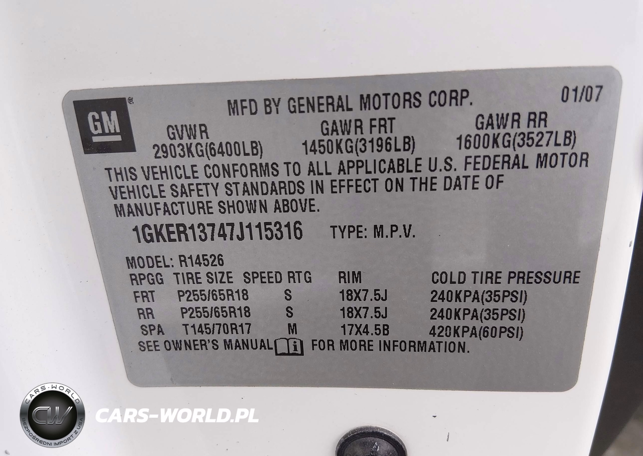 IAAI Nr: I-44580061 VIN: 1GKER13747J115316 Port: Houston, TX