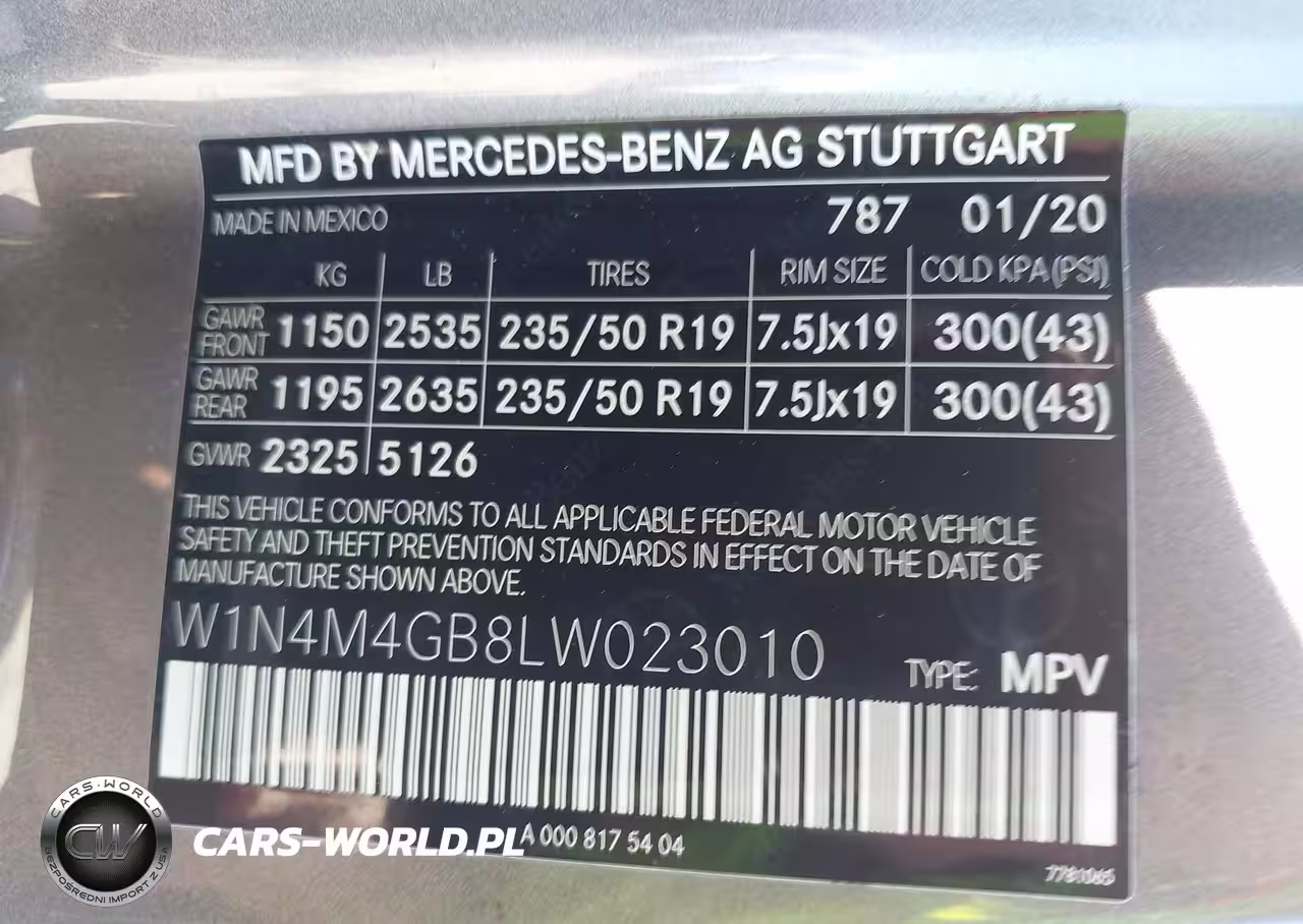 IAAI Nr: I-44580120 VIN: W1N4M4GB8LW023010 Port: Los Angeles, CA