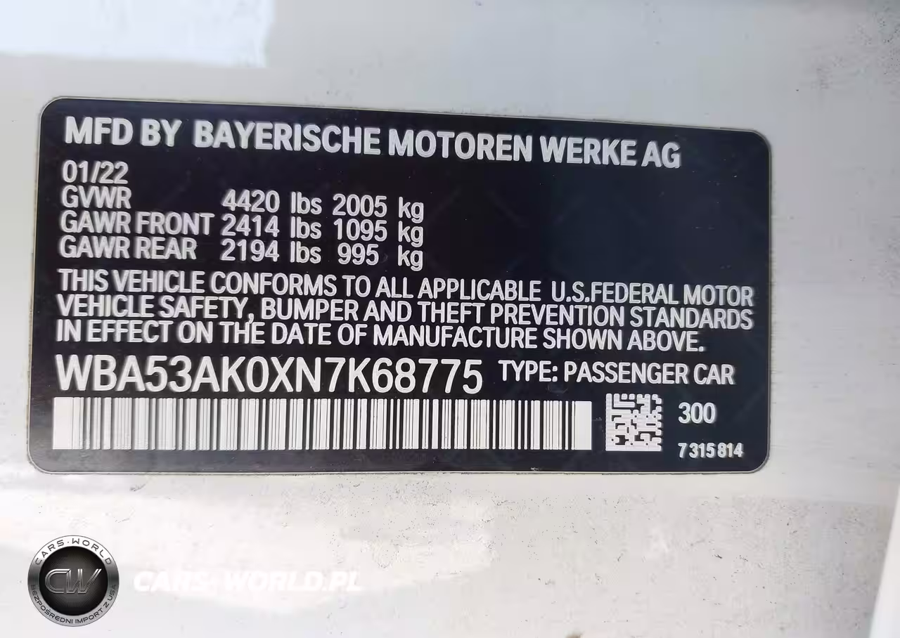 IAAI Nr: I-44580146 VIN: WBA53AK0XN7K68775 Port: Los Angeles, CA