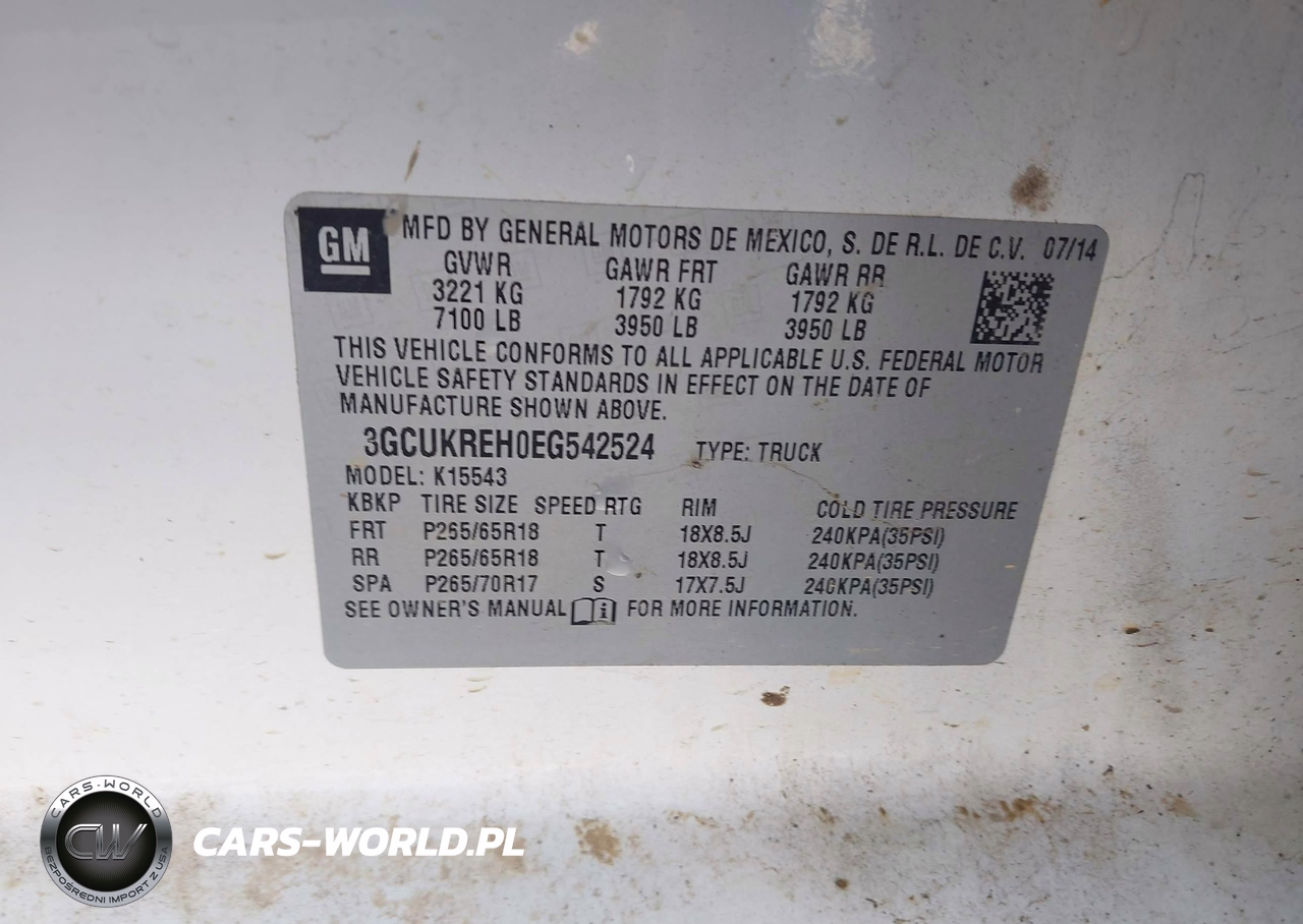 IAAI Nr: I-44580172 VIN: 3GCUKREH0EG542524 Port: Savannah, GA