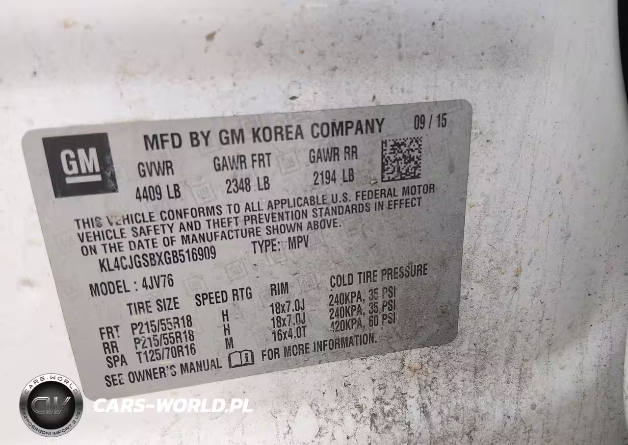 IAAI Nr: I-44581003 VIN: KL4CJGSBXGB516909 Port: Savannah, GA