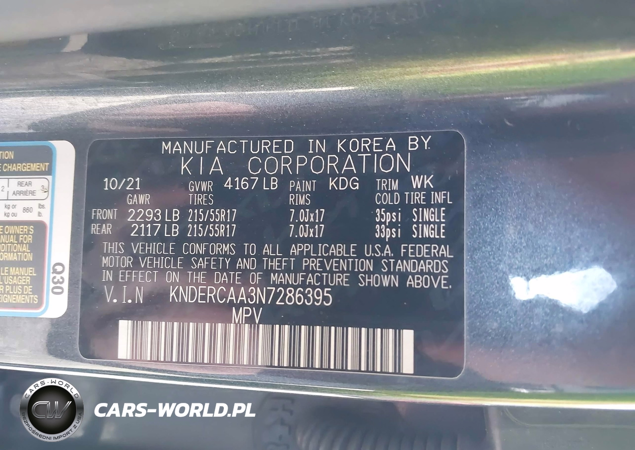 IAAI Nr: I-44581085 VIN: KNDERCAA3N7286395 Port: Indianapolis, IN