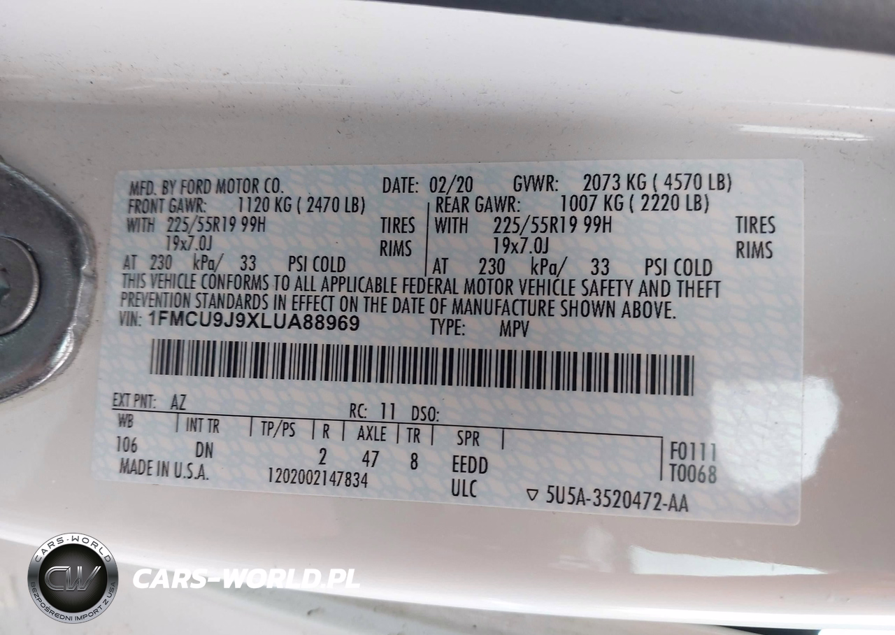 IAAI Nr: I-44581524 VIN: 1FMCU9J9XLUA88969 Port: Elizabeth, NJ