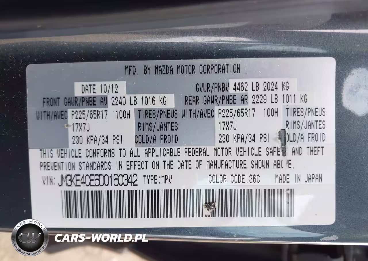 IAAI Nr: I-44581808 VIN: JM3KE4CE6D0160342 Port: Elizabeth, NJ