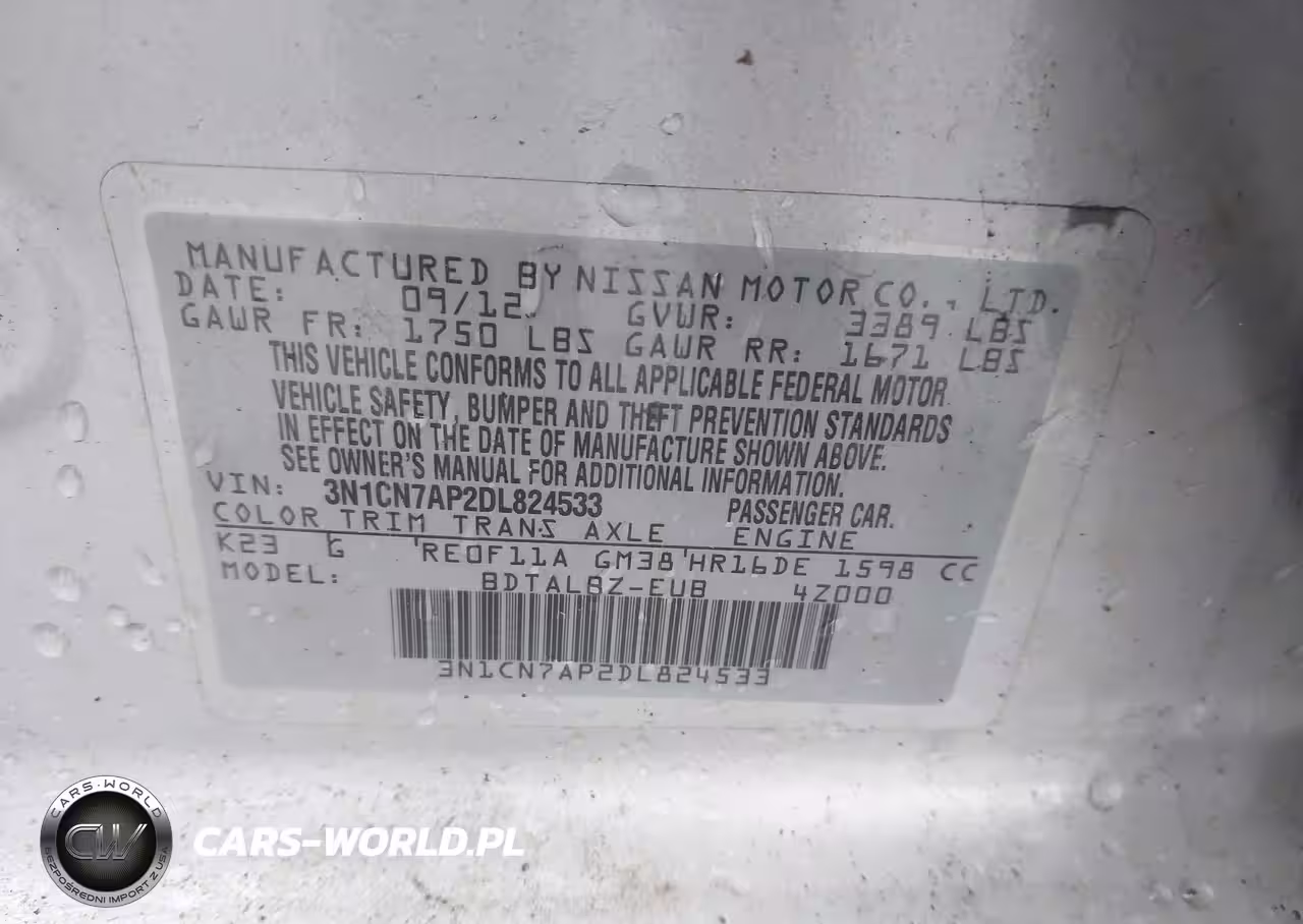 IAAI Nr: I-44582064 VIN: 3N1CN7AP2DL824533 Port: Elizabeth, NJ