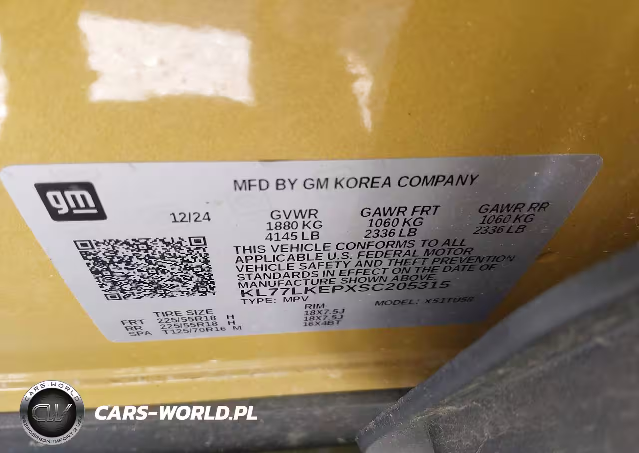 IAAI Nr: I-44582631 VIN: KL77LKEPXSC205315 Port: Indianapolis, IN
