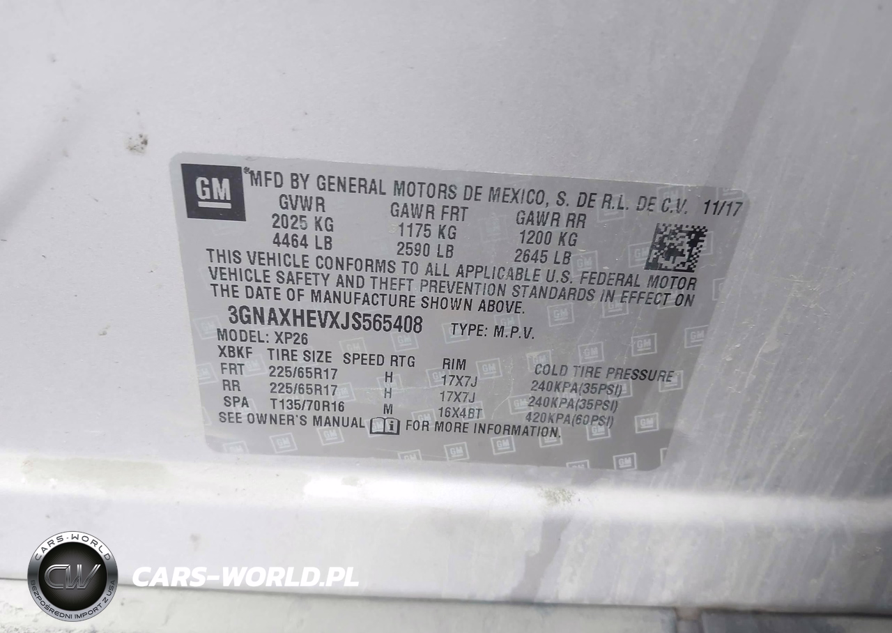 IAAI Nr: I-44582828 VIN: 3GNAXHEVXJS565408 Port: Elizabeth, NJ