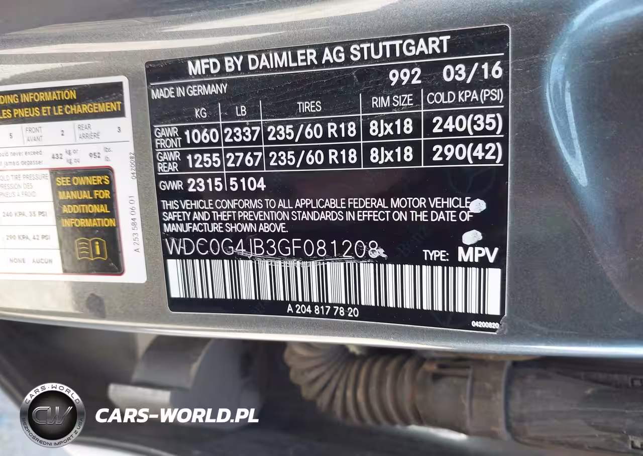 IAAI Nr: I-44583951 VIN: WDC0G4JB3GF081208 Port: Los Angeles, CA