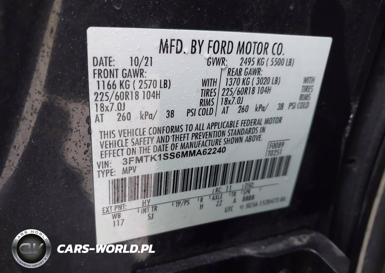IAAI Nr: I-44584073 VIN: 3FMTK1SS6MMA62240 Port: Indianapolis, IN