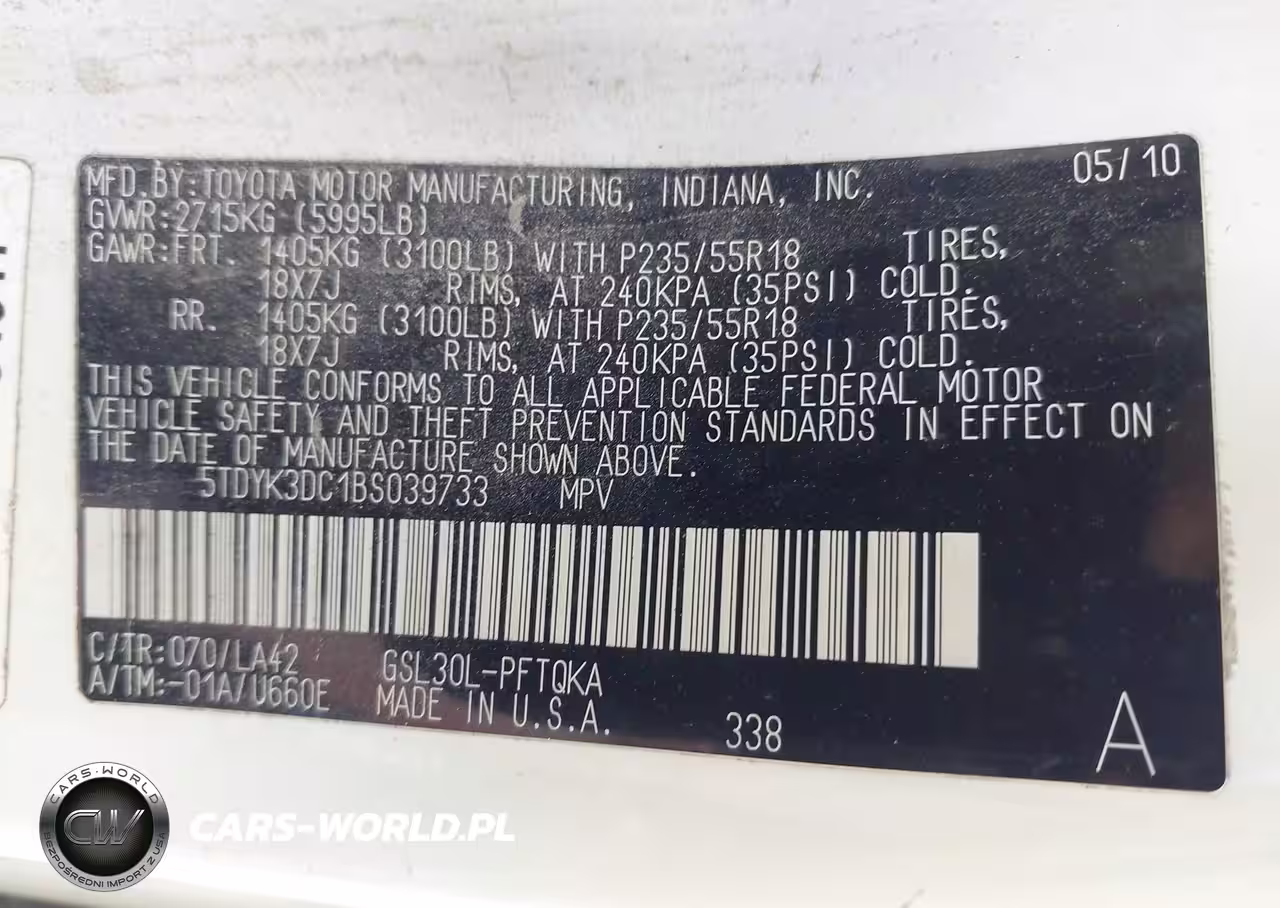 IAAI Nr: I-44584117 VIN: 5TDYK3DC1BS039733 Port: Indianapolis, IN
