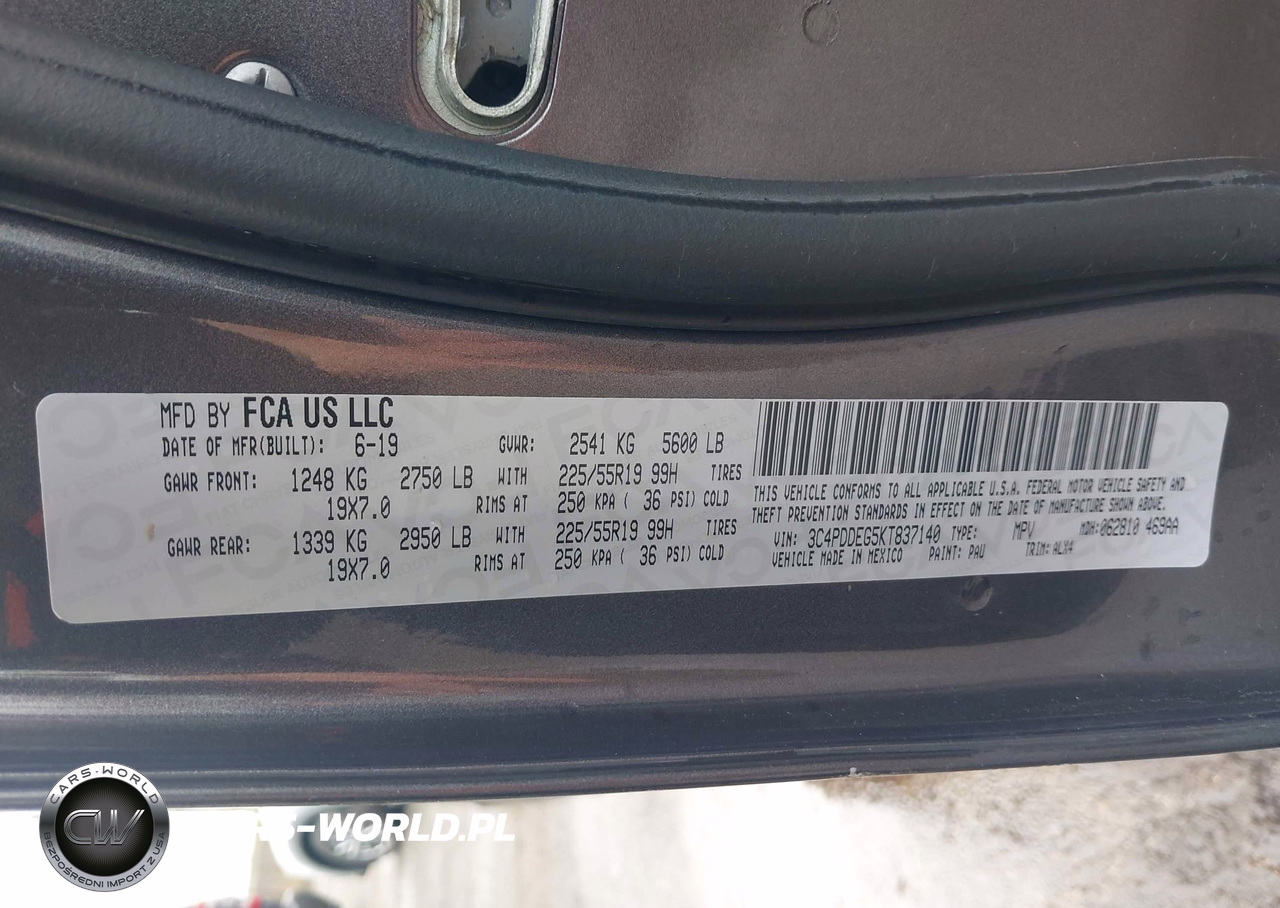 IAAI Nr: I-44584558 VIN: 3C4PDDEG5KT837140 Port: Indianapolis, IN