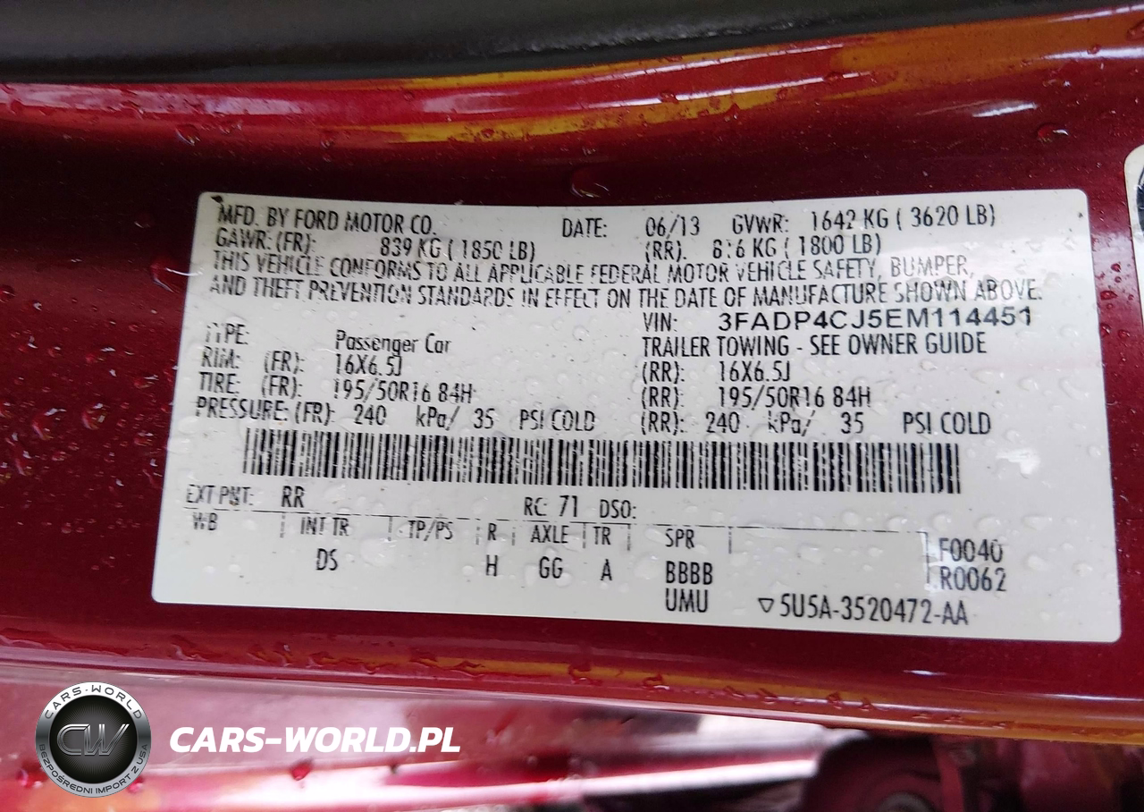IAAI Nr: I-44585152 VIN: 3FADP4CJ5EM114451 Port: Indianapolis, IN