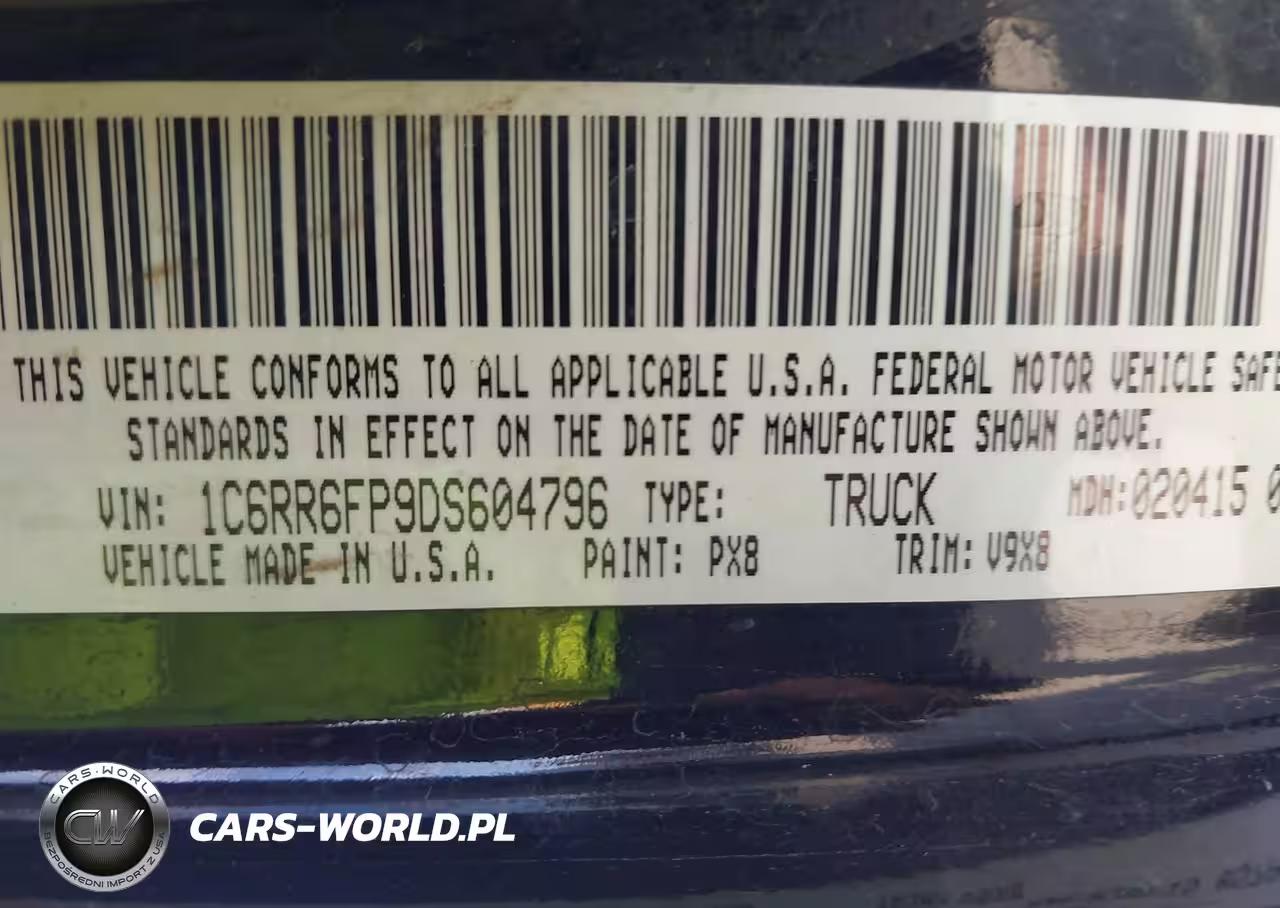IAAI Nr: I-44585872 VIN: 1C6RR6FP9DS604796 Port: Houston, TX