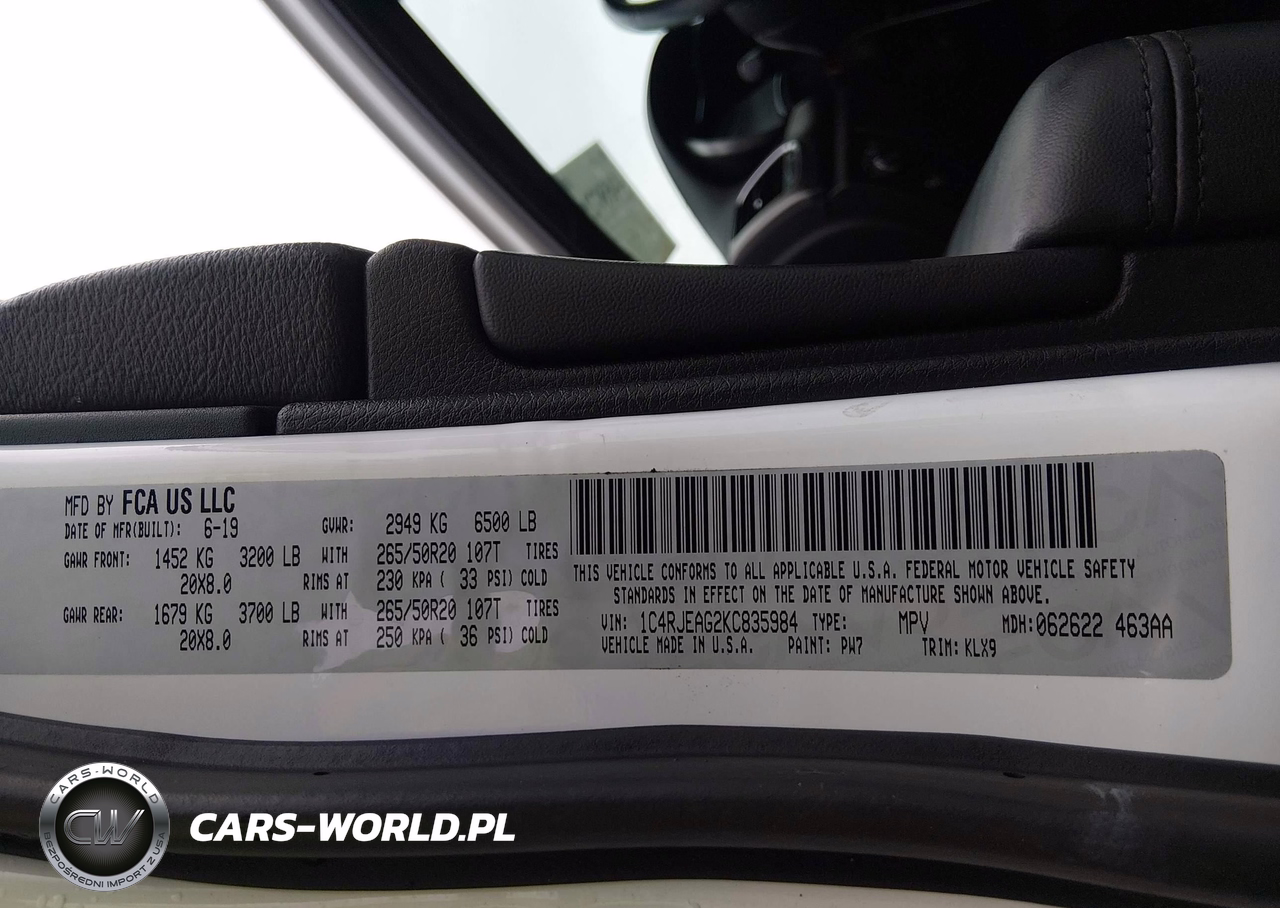 IAAI Nr: I-44587297 VIN: 1C4RJEAG2KC835984 Port: Indianapolis, IN