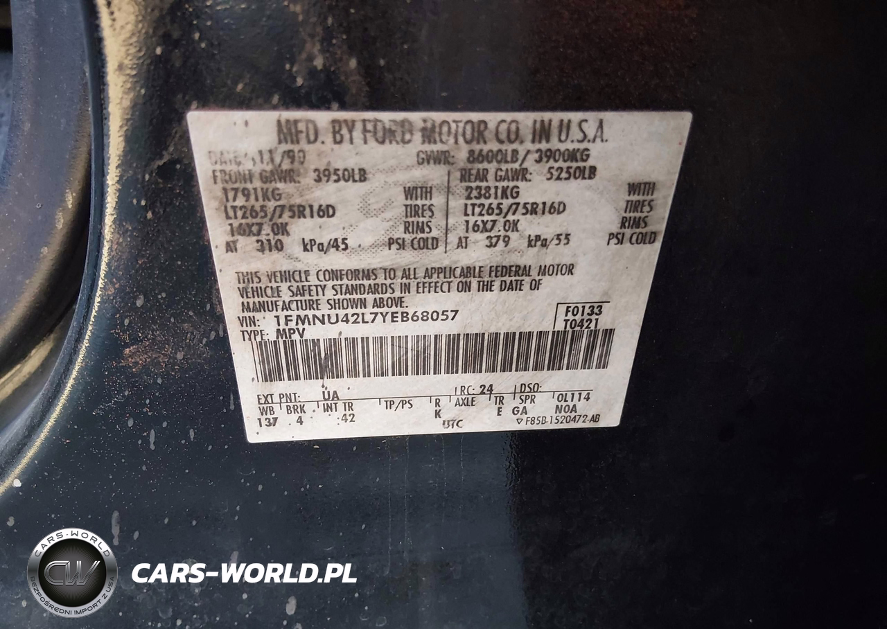 IAAI Nr: I-44588280 VIN: 1FMNU42L7YEB68057 Port: Los Angeles, CA