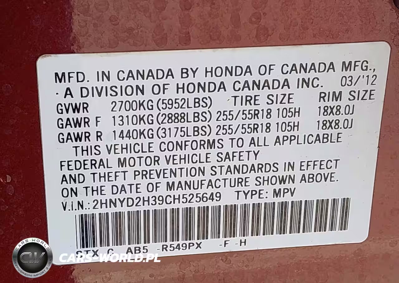 IAAI Nr: I-44588634 VIN: 2HNYD2H39CH525649 Port: Savannah, GA