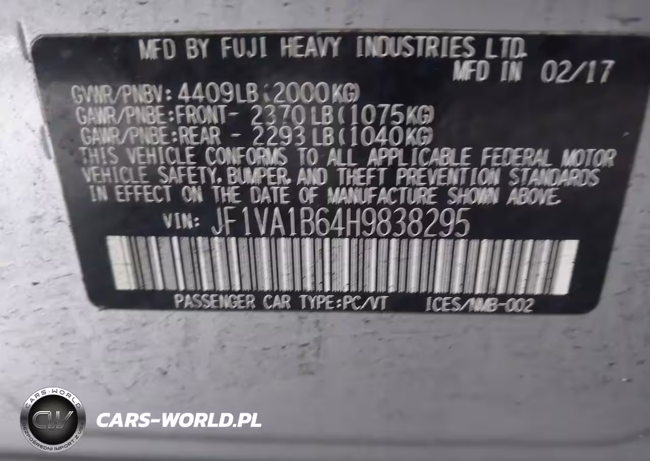 IAAI Nr: I-44588636 VIN: JF1VA1B64H9838295 Port: Elizabeth, NJ