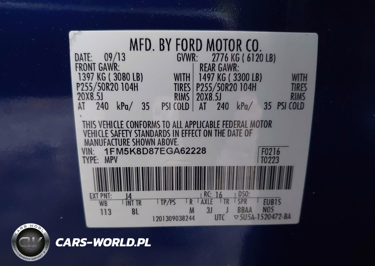 IAAI Nr: I-44589135 VIN: 1FM5K8D87EGA62228 Port: Elizabeth, NJ