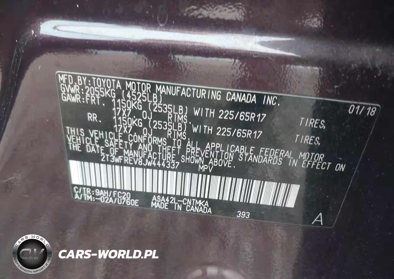 IAAI Nr: I-44589399 VIN: 2T3WFREV8JW444337 Port: Savannah, GA