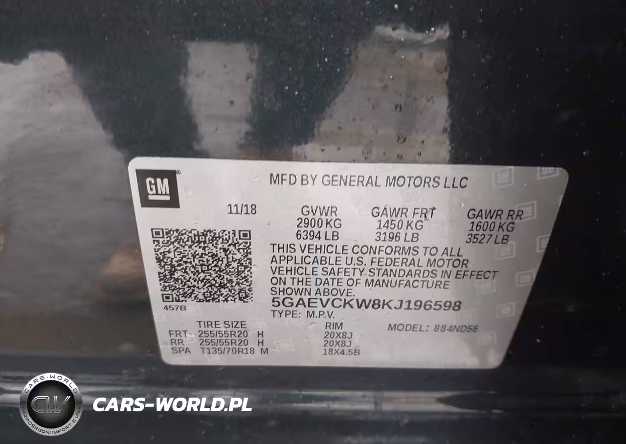 IAAI Nr: I-44589749 VIN: 5GAEVCKW8KJ196598 Port: Elizabeth, NJ