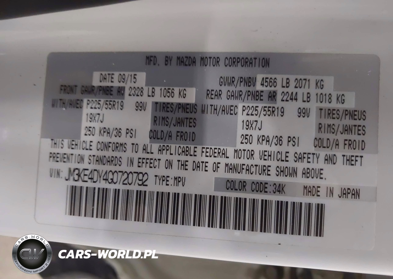 IAAI Nr: I-44590593 VIN: JM3KE4DY4G0720792 Port: Indianapolis, IN