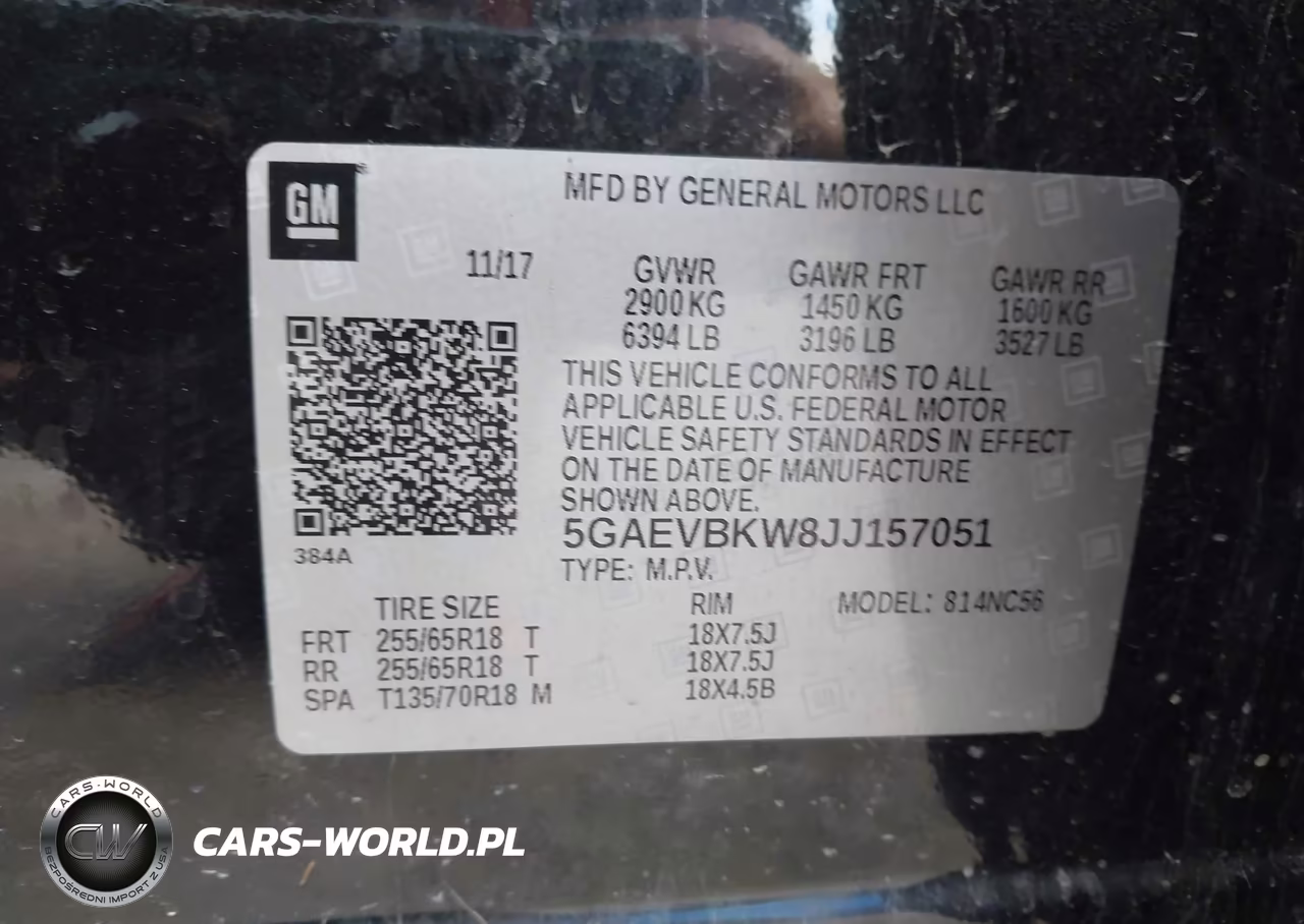 IAAI Nr: I-44590854 VIN: 5GAEVBKW8JJ157051 Port: Indianapolis, IN