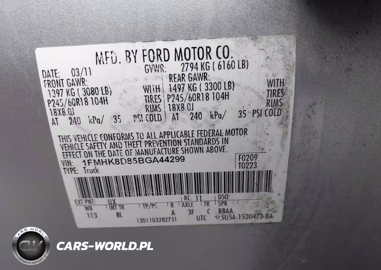 IAAI Nr: I-44591473 VIN: 1FMHK8D85BGA44299 Port: Elizabeth, NJ