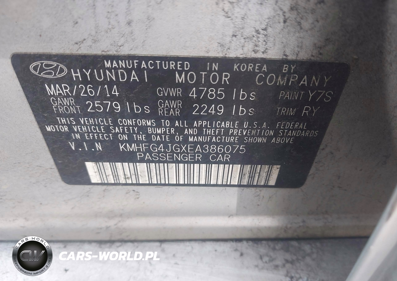 IAAI Nr: I-44591593 VIN: KMHFG4JGXEA386075 Port: Savannah, GA