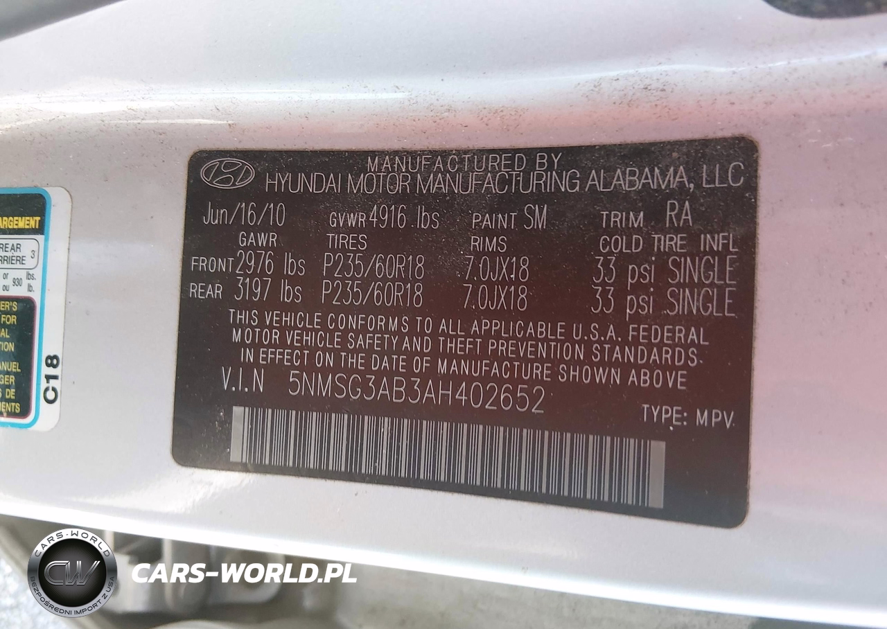 IAAI Nr: I-44591942 VIN: 5NMSG3AB3AH402652 Port: Savannah, GA