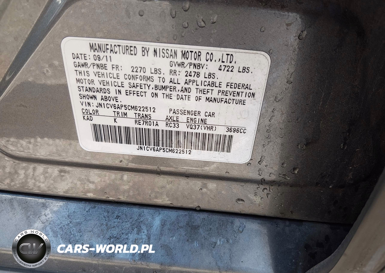 IAAI Nr: I-44592010 VIN: JN1CV6AP5CM622512 Port: Los Angeles, CA