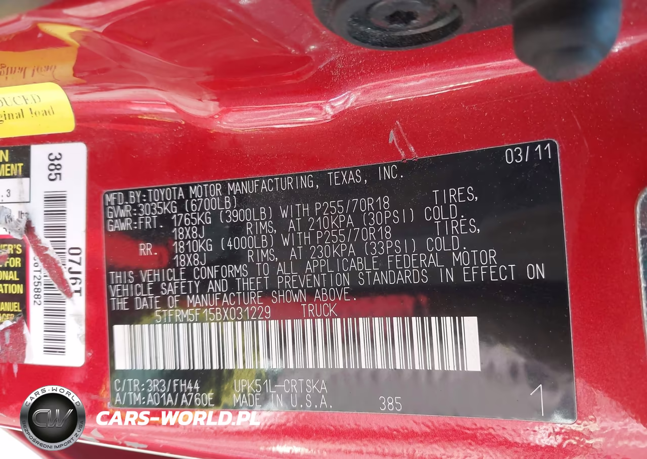 IAAI Nr: I-44592231 VIN: 5TFRM5F15BX031229 Port: Los Angeles, CA