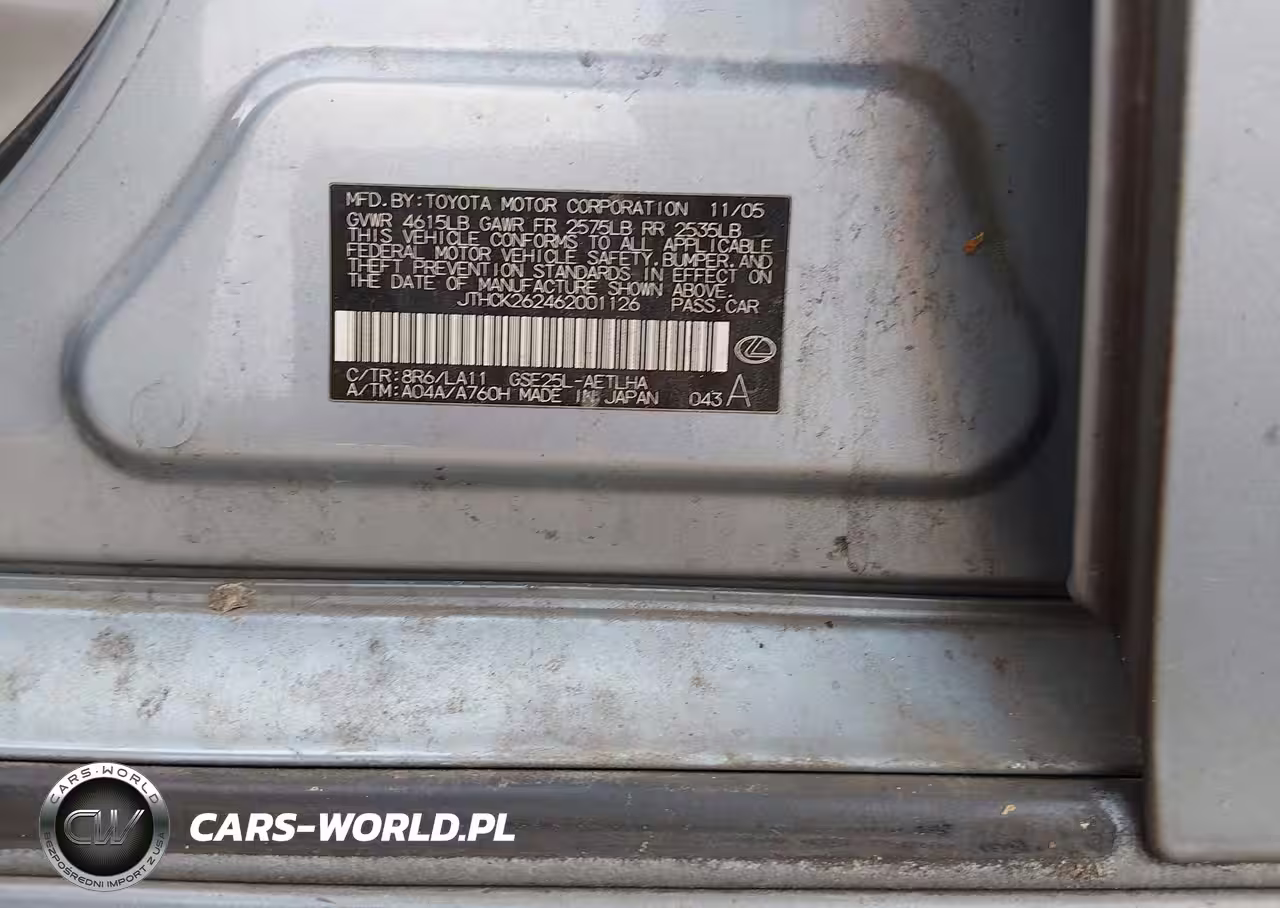 IAAI Nr: I-44592610 VIN: JTHCK262462001126 Port: Savannah, GA