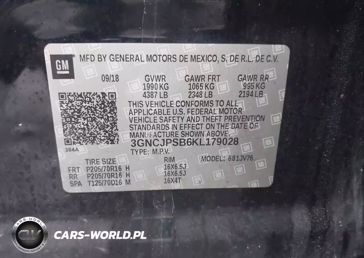 IAAI Nr: I-44592987 VIN: 3GNCJPSB6KL179028 Port: Elizabeth, NJ