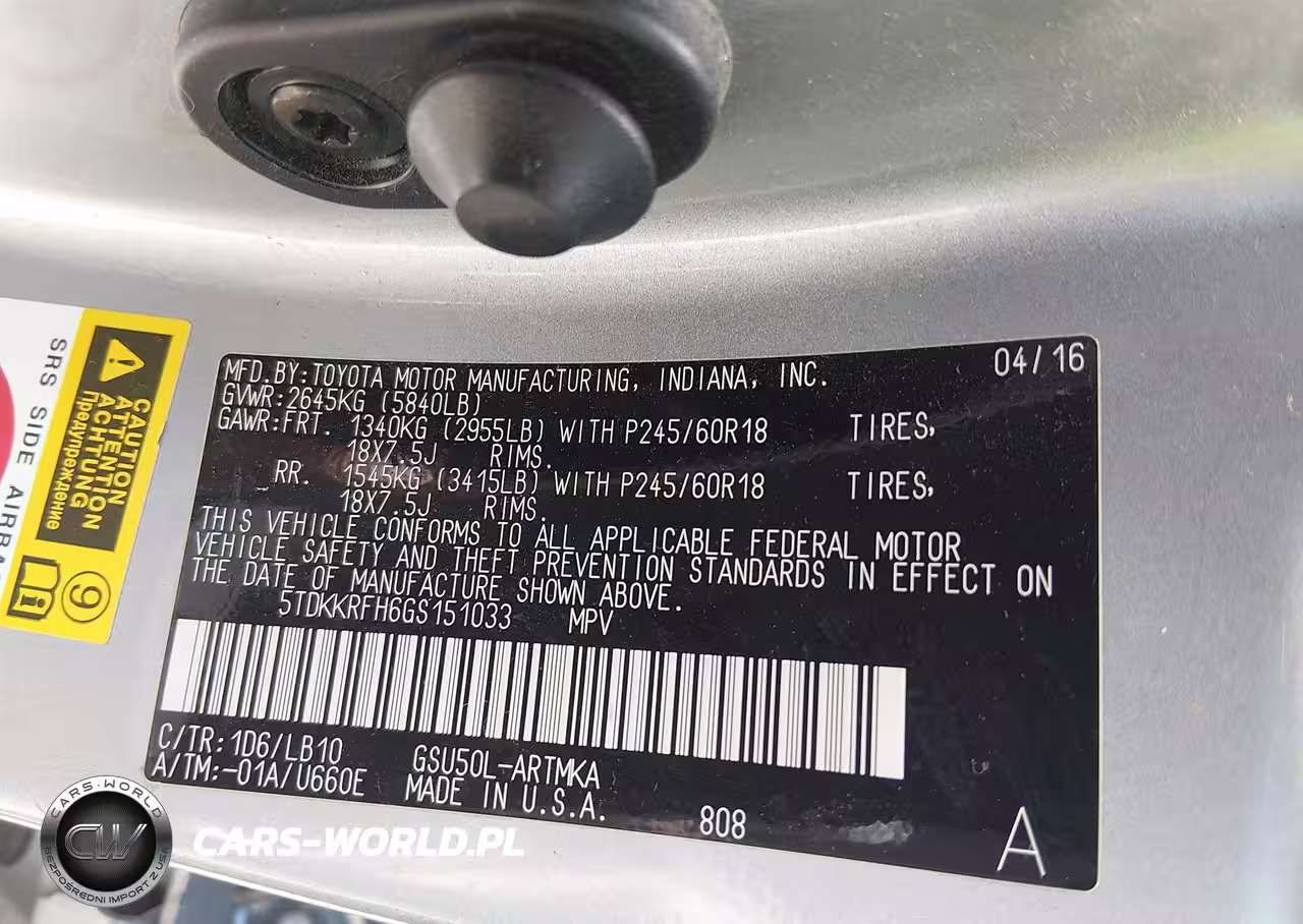 IAAI Nr: I-44594042 VIN: 5TDKKRFH6GS151033 Port: Houston, TX