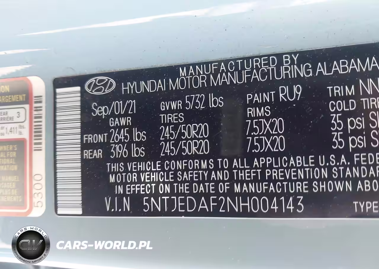 IAAI Nr: I-44594545 VIN: 5NTJEDAF2NH004143 Port: Savannah, GA