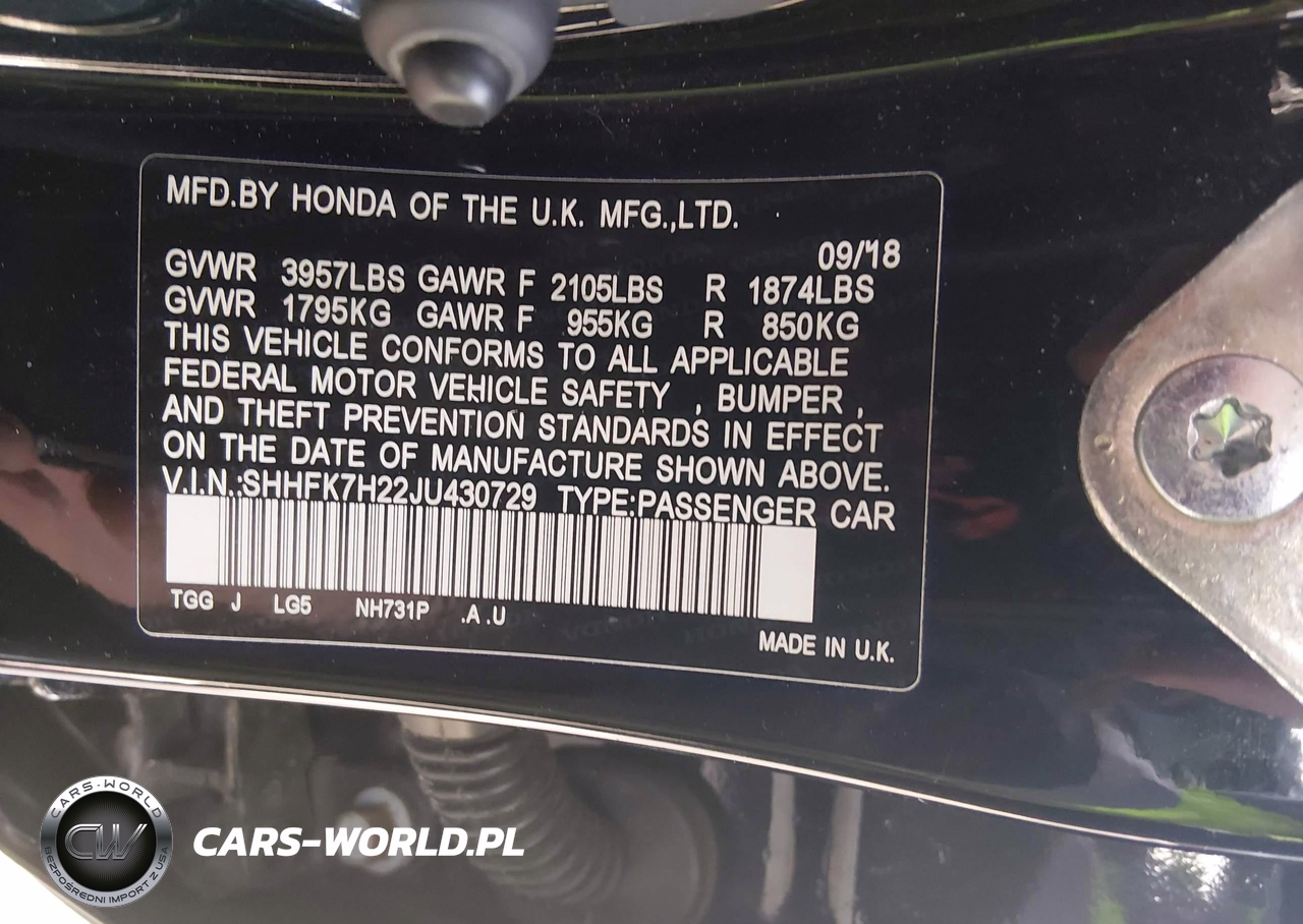 IAAI Nr: I-44594630 VIN: SHHFK7H22JU430729 Port: Elizabeth, NJ