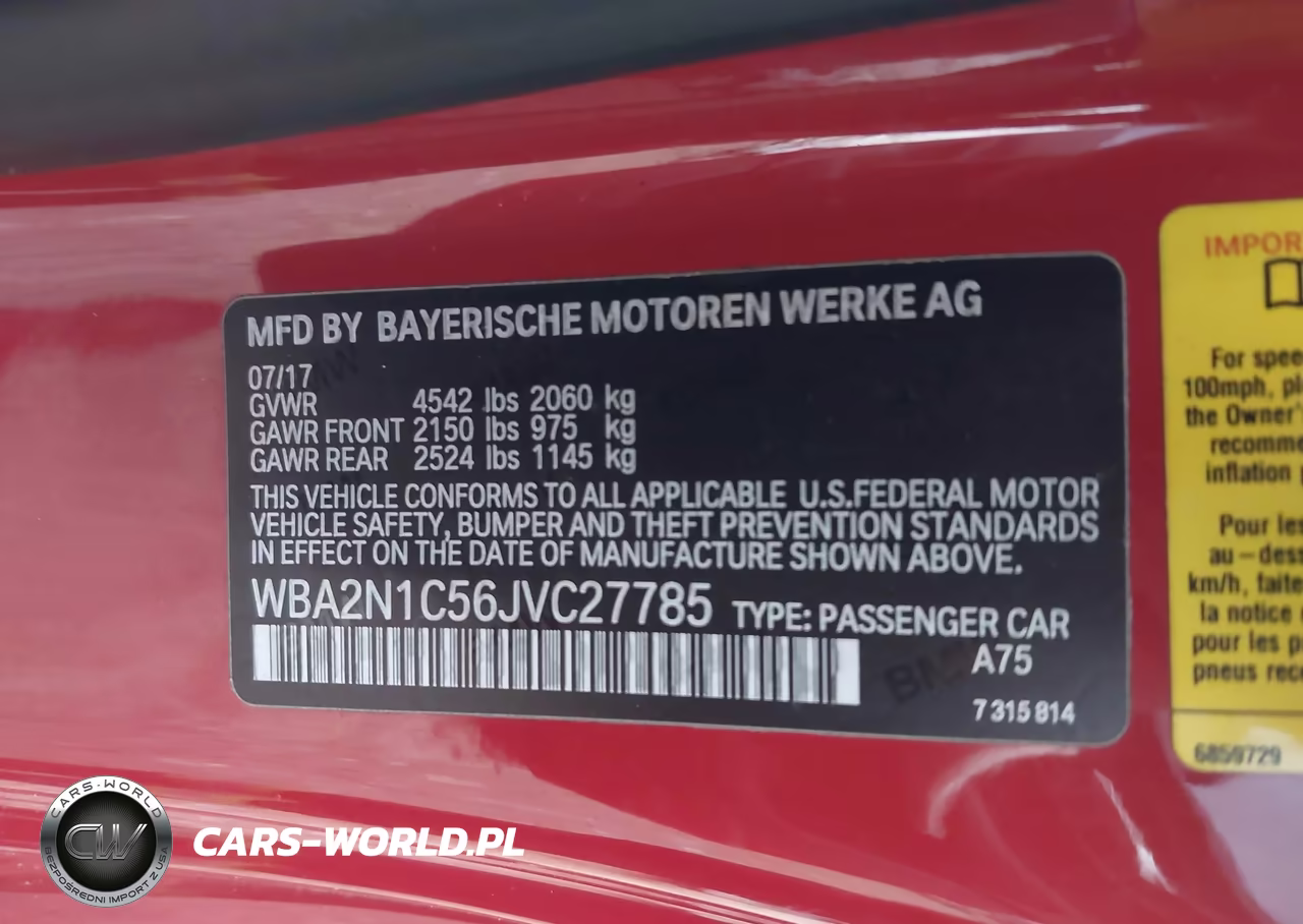 IAAI Nr: I-44594976 VIN: WBA2N1C56JVC27785 Port: Elizabeth, NJ