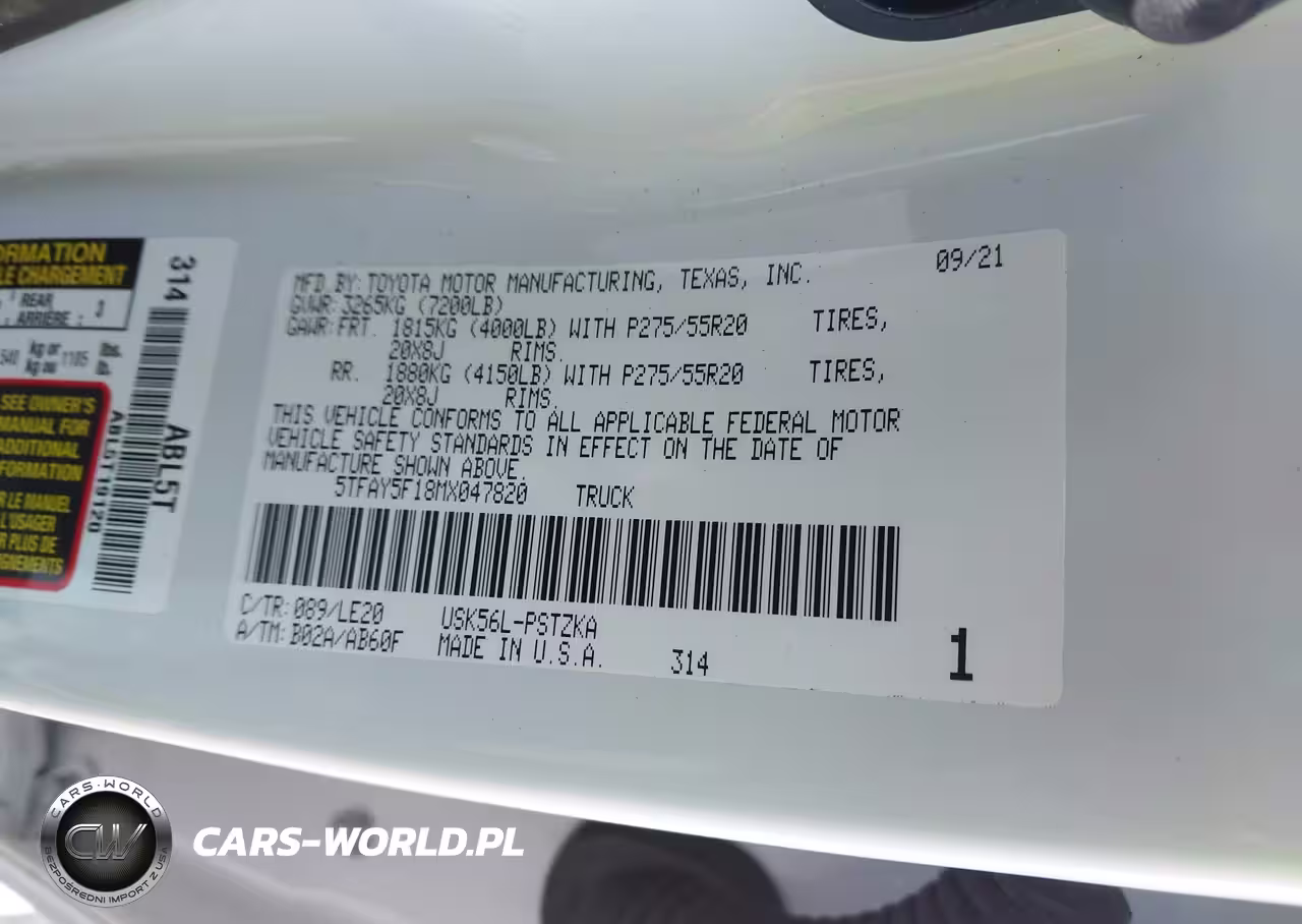 IAAI Nr: I-44595445 VIN: 5TFAY5F18MX047820 Port: Elizabeth, NJ