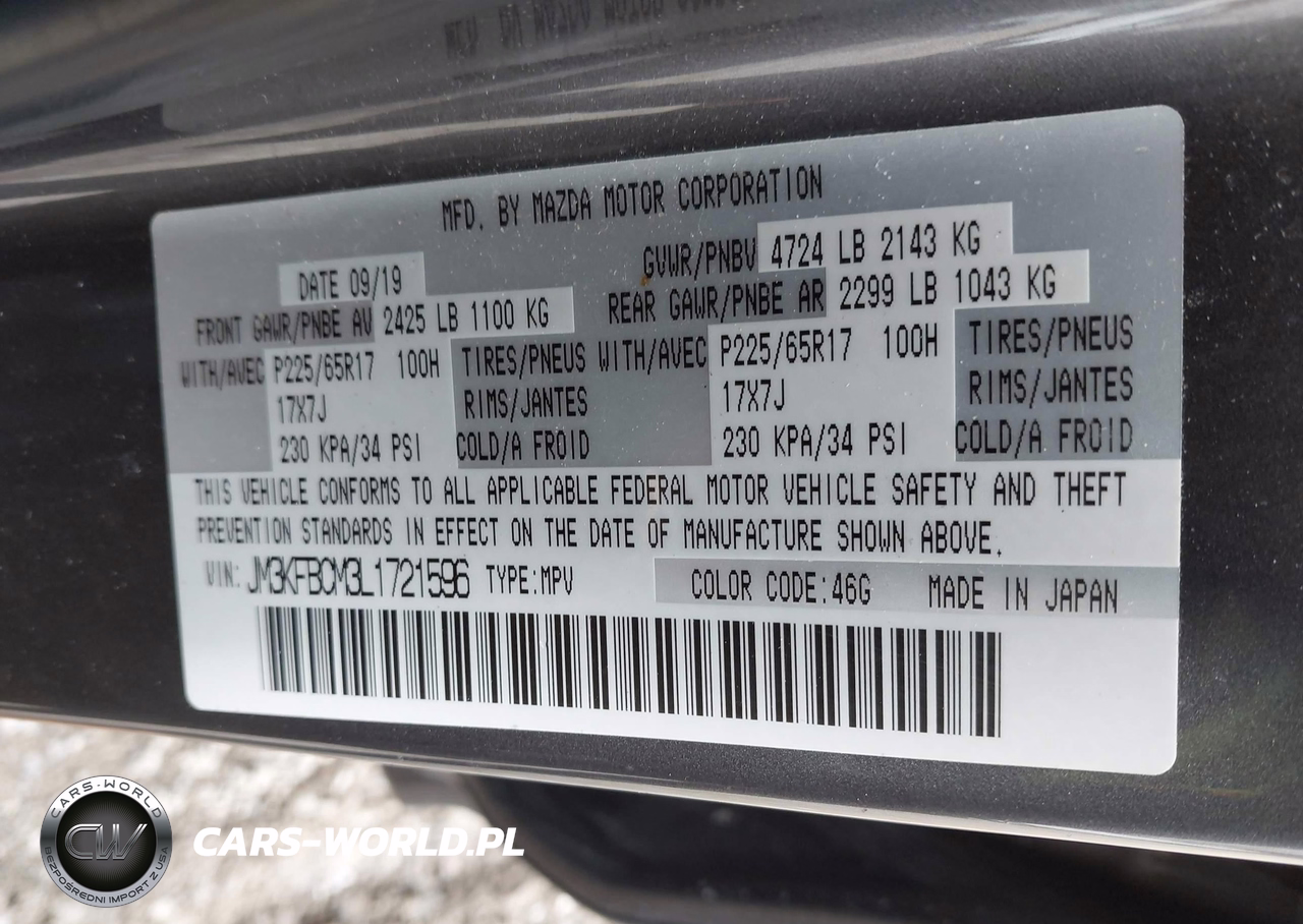 IAAI Nr: I-44595822 VIN: JM3KFBCM3L1721596 Port: Elizabeth, NJ