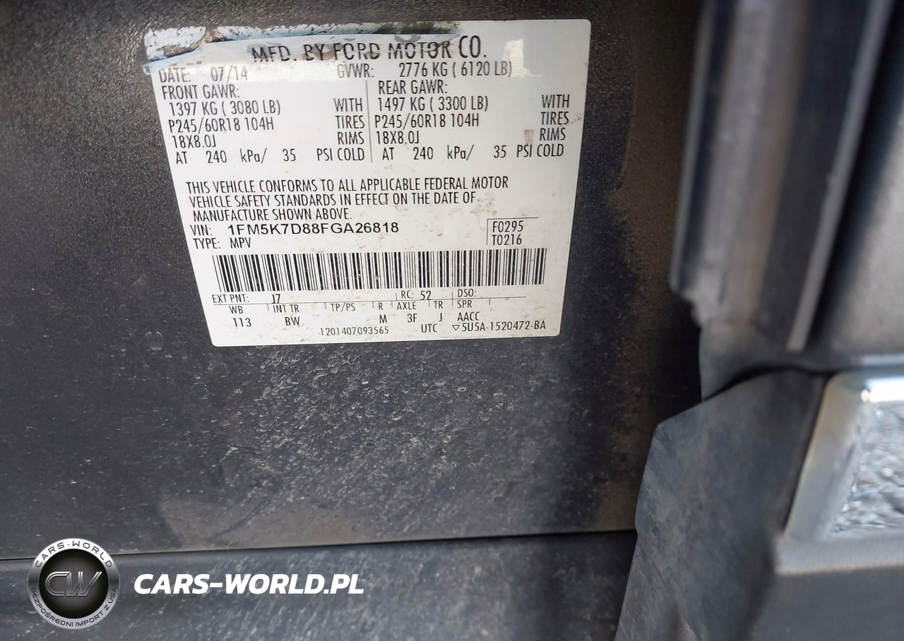 IAAI Nr: I-44596942 VIN: 1FM5K7D88FGA26818 Port: Houston, TX