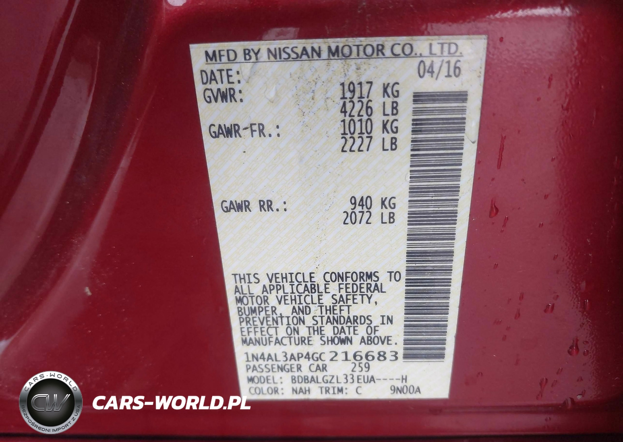 IAAI Nr: I-44597837 VIN: 1N4AL3AP4GC216683 Port: Elizabeth, NJ