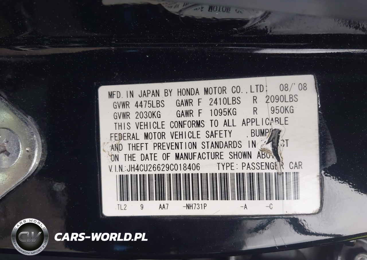 IAAI Nr: I-44597886 VIN: JH4CU26629C018406 Port: Savannah, GA