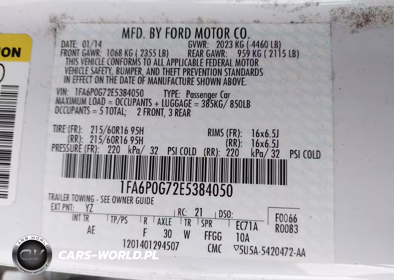 IAAI Nr: I-44599126 VIN: 1FA6P0G72E5384050 Port: Savannah, GA