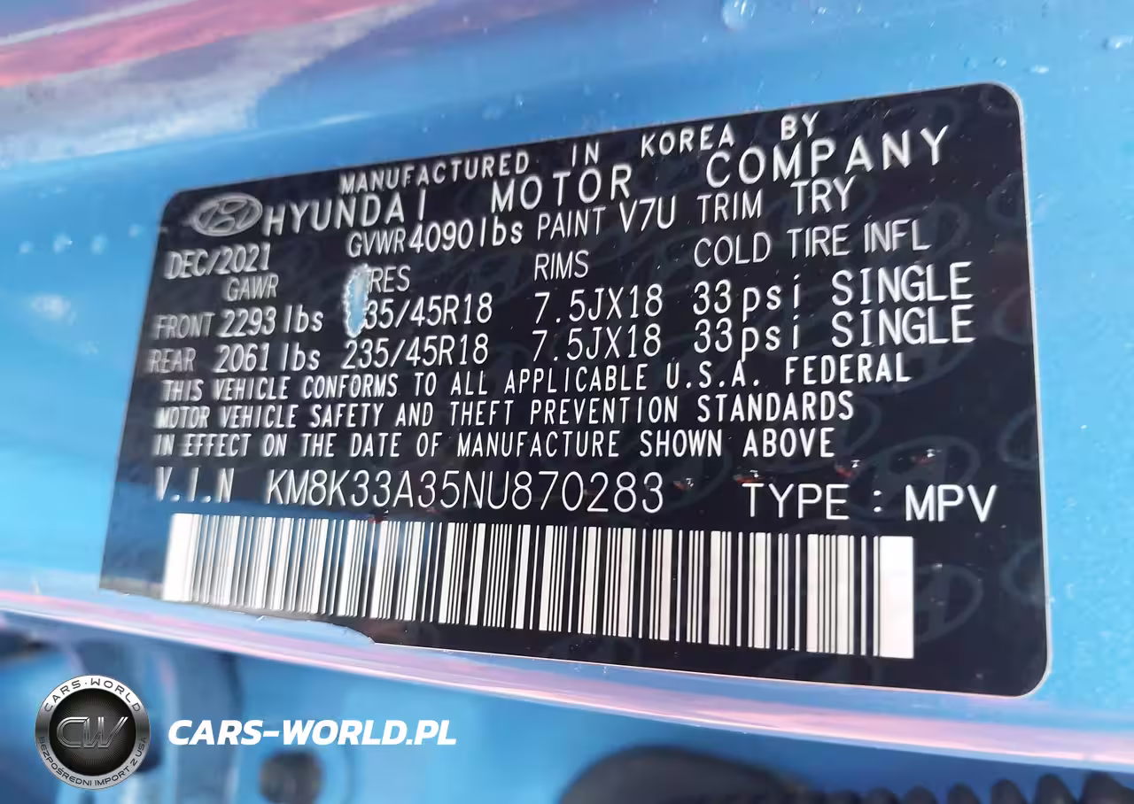 IAAI Nr: I-44599542 VIN: KM8K33A35NU870283 Port: Elizabeth, NJ