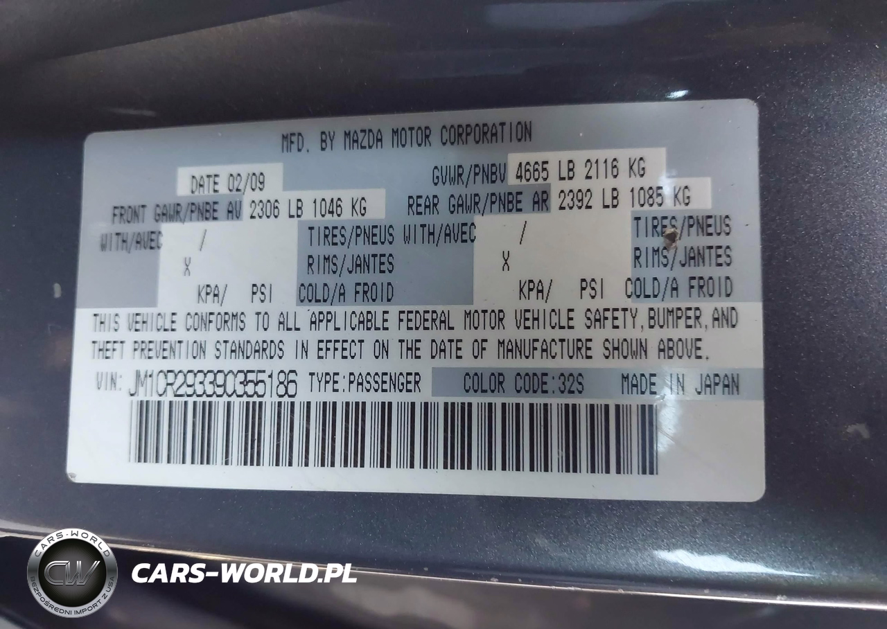 IAAI Nr: I-44600976 VIN: JM1CR293390355186 Port: Los Angeles, CA